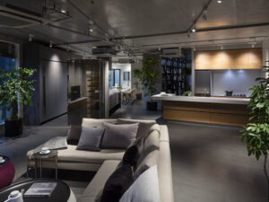 本社ビル2階に新たにオープンした新ショールームは、これまでのオーダーキッチンに加え、クローゼットやバスルームなどへの対応を拡充したショールームとなっております。