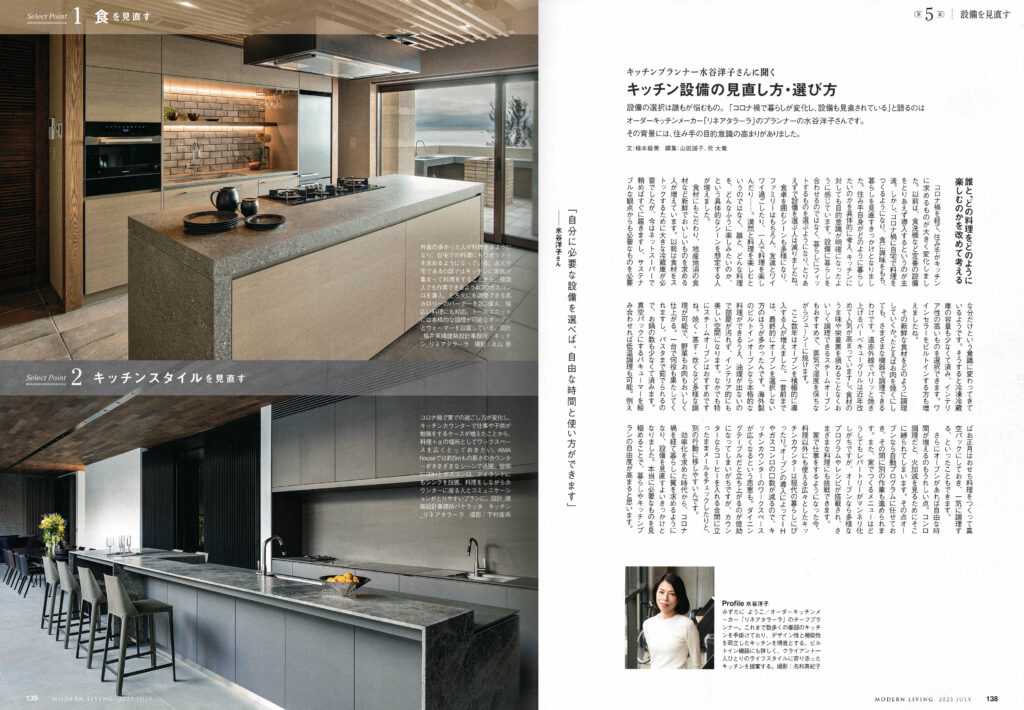 特集タイトルは「キッチンプランナー水谷洋子さんに聞く " キッチン設備の見直し方・選び方 "」
